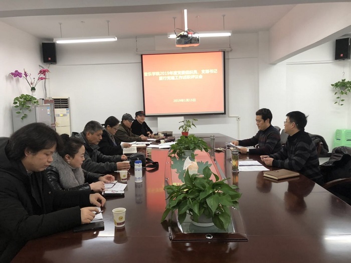 按照学校《关于开展2018年度基层党组织书记抓基层党建述职评议考核工作的通知》(贵大党组通[2018]45号)文件精神,2019年1月15日下午,音乐学院党委在学院802会议室召开了2018年度基层党委组织员及党支部书记述职评议考核工作会议。出席会议的有:学院党委书记范斌同志、院党委副书记张波同志、学院党委组织员、各党支部书记和部门负责人。会议由院党委副书记张波同志主持。会议议程主要分为三个部分:第一,学院党委书记范斌同志强调开展此次述职评议考核工作的重要性;第二,会议听取组织员和各党支部书记从党建职责、思想建设、队伍建设、突出业绩、存在的不足以及下一步工作思路和改进措施等方面情况的述职汇报;第三,学院党委书记范斌同志对组织员和各支部书记述职报告进行点评。