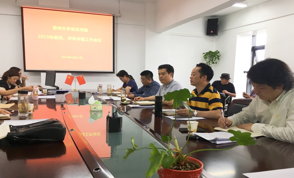 会议传达学习了贵州大学教风、学风的相关文件精神及工作要求;传达了学校有关教学评估准备工作的精神;布置有关本科教学和研究生教学评估相关工作任务;通报近期学校、学院安全稳定工作工作情况;并就加强和推进音乐学院学生管理工作执行力、防范影响学院安全稳定事件等工作提出要求。