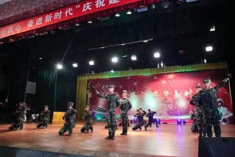 联欢会由我院师生与武警支队战士共同演绎。晚会在武警战士何国理等表演的威风锣鼓《强军战鼓》中拉开帷幕,澎湃激昂的旋律,使人热血沸腾,很快把现场观众带入到晚会的氛围当中。我院学生演唱的《我爱你中国》、《巨洞琵琶歌》、《爱在天地间》、《光》、《那一段有你的时光》等歌曲,完美融合了现代流行和民族特色,既表达了对祖国母亲的热爱,又充分展现了现代大学生的青春魅力,赢得了台下的官兵连连叫好声和掌声。