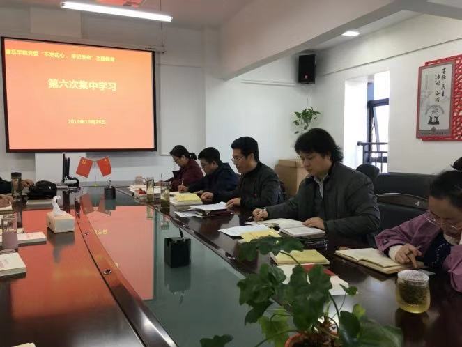 2019年10月29日下午2时,音乐学院党委在学院802会议室,召开“不忘初心 牢记使命”主题教育党委中心组理论学习(扩大)第六次专题学习。学院在职处级干部、院党委委员、组织员、院各基层党支部书记、副书记参加了会议。党委书记范斌同志主持会议。