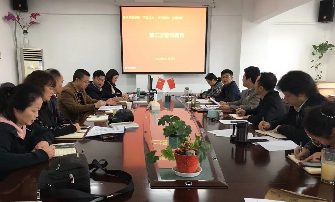 音乐学院党委于2019年11月4日上午,在学院802会议室,召开第二次警示教育专题会议,学院在职处级干部、院党委委员、院属各基层党支部书记、副书记参加,院党委副书记、纪委书记张波同志主持会议。