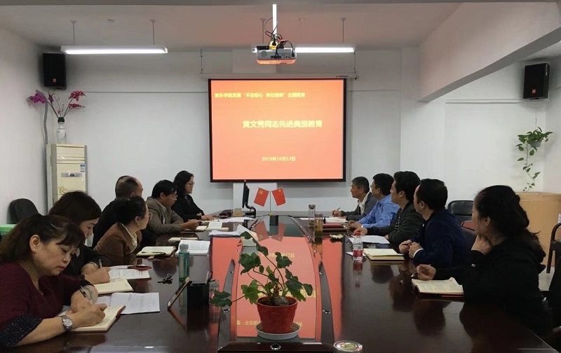 2019年10月12日上午,音乐学院党委在学院802会议室,组织全体处级干部、各党支部书记、副书记、委员,集体收看时代楷模人物黄文秀《用生命坚守初心使命的青年共产党员》专题视频。