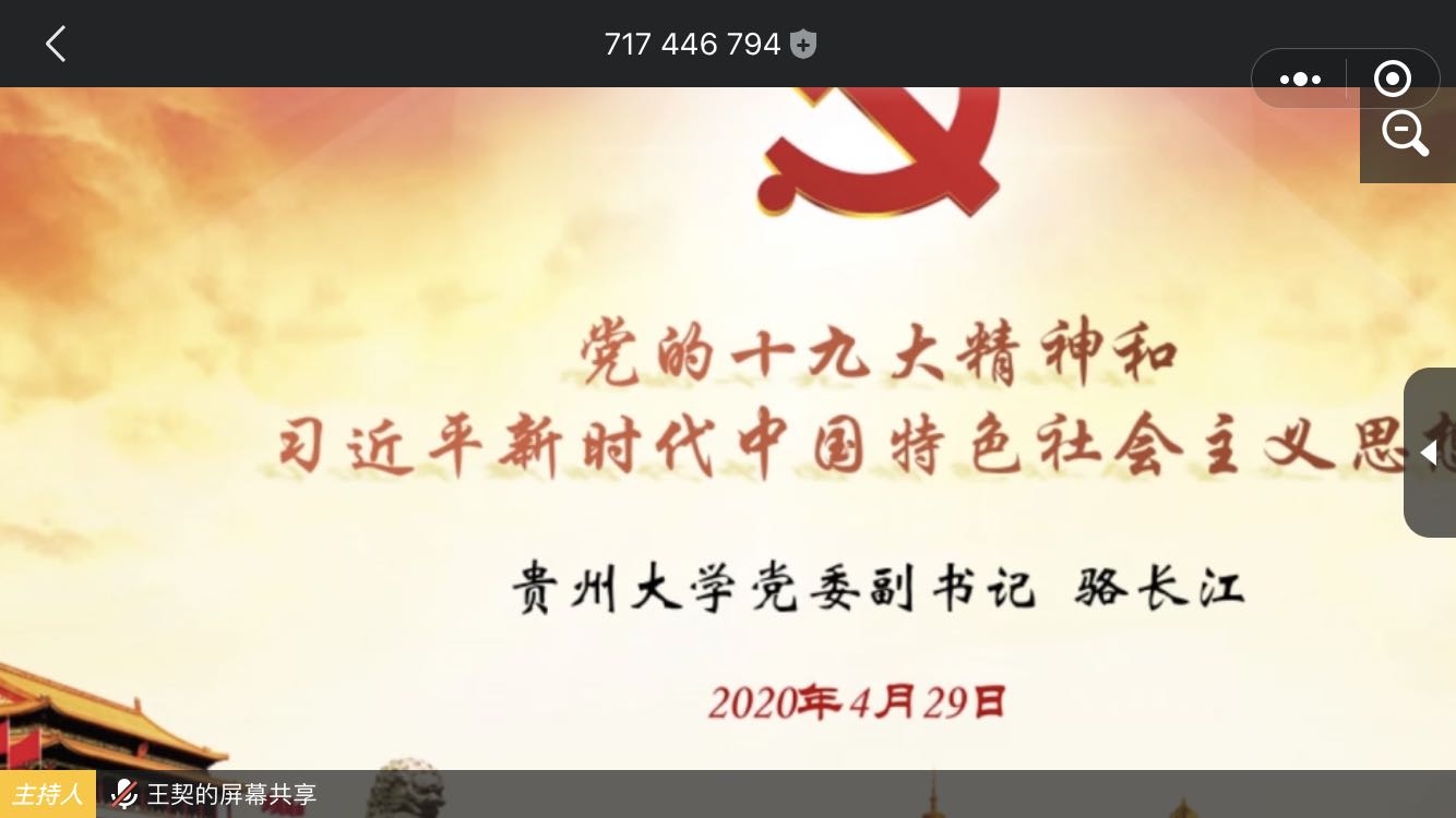 2020年4月29日晚7:00,贵州大学党委副书记骆长江同志通过腾讯会议网络课堂的形式为音乐学院分党校第三十二期入党积极分子培训班111名同学讲授党课,主题为《党的十九大精神和习近平新时代中国特色社会主义思想》,音乐学院党委委员、组织员高琛同志一起聆听了授课。