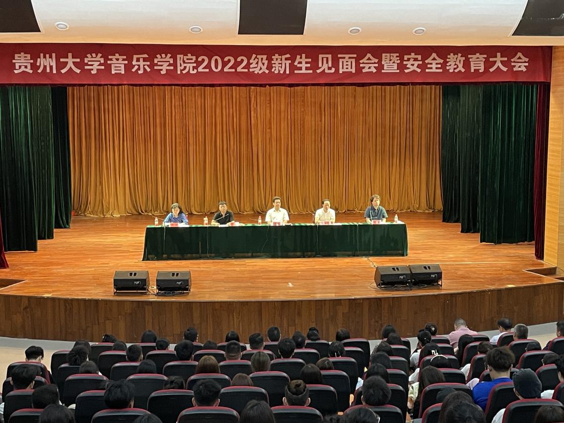 2022年8月27日上午,音乐学院 2022级研究生、本科生见面会暨安全教育大会在学院一楼实验剧场举行。音乐学院党委书记范斌、院长穆维平、党委副书记张波、副院长青科、副院长宋扬出席会议。各系党政领导、各部门负责人、辅导员、新生班主任以及2022级全体本科生、硕士研究生共345名同学参加大会,会议由张波主持。