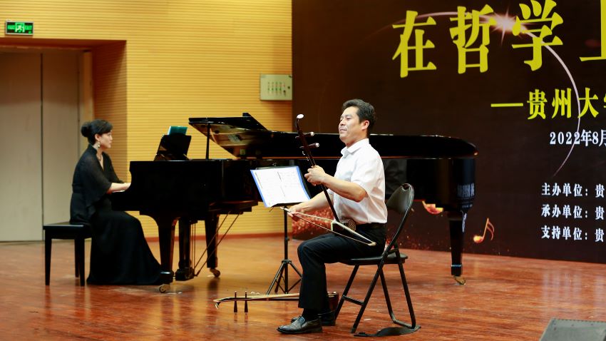 贵州大学音乐学院党委书记范斌与波罗的海区域研究中心主任、音乐学院副院长宋扬在贵州大学建校120周年系列音乐会中现场演奏