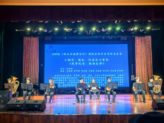 10月25日上午,贵州大学音乐学院国家级一流本科专业建设教学实践活动“我们是最好的一代Ⅱ”《歌曲与旋律写作》课程原创作品汇报考核在韵正楼实验剧场隆重开展,来自音乐学院2021级音乐表演专业的142名本科生展演了自己创作、编排的音乐作品。