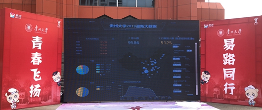 “大数据”成为今年报到现场的一大亮点。易班工作站负责人介绍,今年新生报到正式告别手动填写资料,改为扫码报道。新生扫描易班公众号填写资料后,后台数据立即导出,在LED大屏上便可及时了解新生报到人数、年龄、院系报道、各时间段报到人数分布等情况。