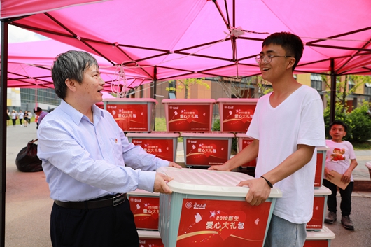 在迎新现场,学生资助管理中心为需要贷款学生及精准扶贫学生开设绿色通道,为学生申请贷款提供“一站式”服务,并为家庭经济特别困难学生准备30份爱心大礼包和临时困难补助现金,让特困学生感受到学校的爱心和关怀。