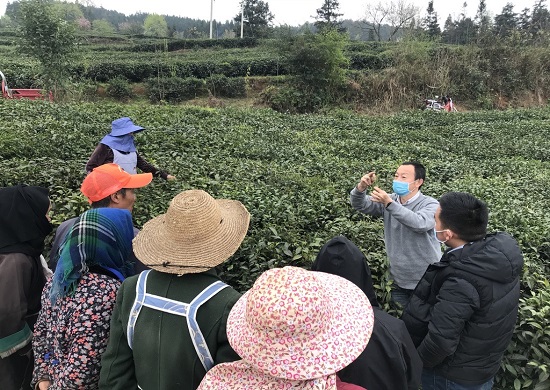 金林红在普安楼下镇茗晨茶场进行新种茶苗管护技术示范和技术培训
