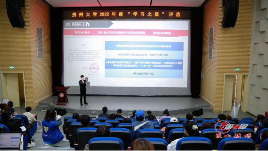经各学院推荐,此次评选活动共有32位同学角逐2022年度“学习之星”,各位同学从思想品德、学业规划、获奖情况、学术科研情况、学习榜样发挥情况等方面进行展示,讲述学习的心路历程,介绍学习经验和方法,现场同学认真观摩学习,掌声和赞叹声接连不断。经评选,张鑫等20名同学荣获贵州大学2022年度“学习之星”荣誉称号。