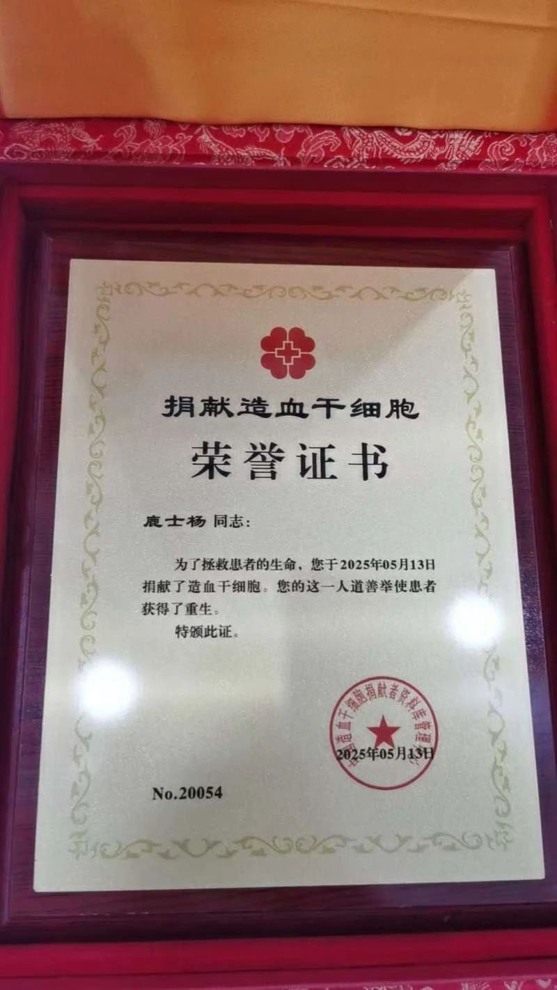 捐献过程中,妻子杨静始终陪伴左右。“登记前就和爱人商量过,她给予我最大的支持与力量。”父母和兄弟姐妹起初担心影响身体,但也尽量将担忧化为理解,最终选择尊重他的决定。成为父亲后,鹿士杨对生命的感知更加深刻:“每天睁眼就是围着孩子转,送托儿班、陪玩、哄睡,这些平凡时光让我明白,生命的珍贵不在于宏大叙事,而在于细微的日常。”“珍惜生命”这一信念,支撑着鹿士杨的行动。因此,就算注射动员剂带来腰酸背痛、低热和难以入眠的骨痛,他都能淡然一笑:“身体的不适是可以克服的,因为将完成生命延续的大事。”