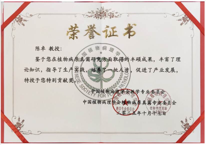 绿色农药全国重点实验室陈卓教授获首项 “特别贡献奖”