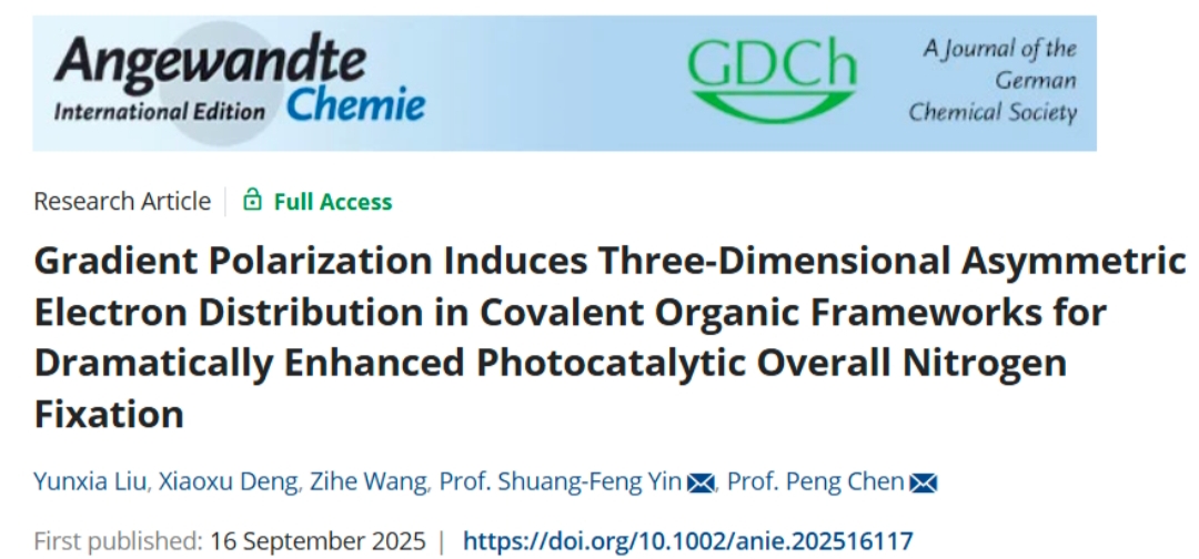 化学与化工学院陈鹏团队光催化固氮技术登顶刊