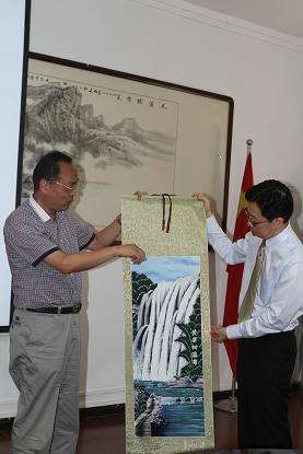 会谈后,蔡簦合总领事参观了贵州大学中国文化书院,听取中国文化书院负责人对书院相关情况的介绍,并在书院仁文厅题字。