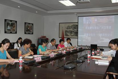 2016年7月8日上午,新加坡驻广州总领事蔡簦合先生及副领事叶思鸿女士一行两人来访我校,校发展委员会副主席任钢建教授代表学校与蔡簦合总领事进行会谈,国际交流与合作处及国际教育学院相关人员参加会谈。