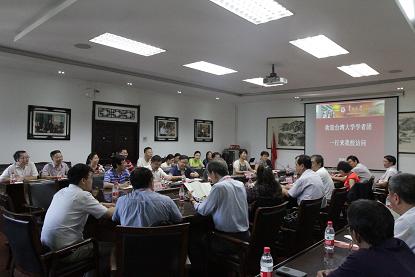 会谈伊始,我校农学院、林学院、酿酒与食品工程学院、生命科学学院负责人向台大教授介绍各自学院学科建设、教学学术及产学研结合发展情况。台湾大学蔡明哲教授介绍台大来访学者的学术、学科专长,以及台湾大学实验林在森林疗养、永续林业管理及有机茶园经营等方面所作出的成果。