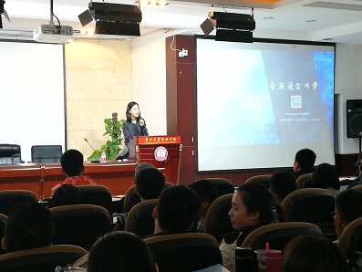 在管理学院报告厅,王主任向同学们介绍了香港浸会大学在全球和亚洲的排名情况及浸会大学硕士研究生招生情况。她分别从课程目标、课程特色、课程结构和课程安排等方面做了详细介绍,同时还介绍了课程咨询委员会成员、入学资格、英语水平要求及就业机会等。
