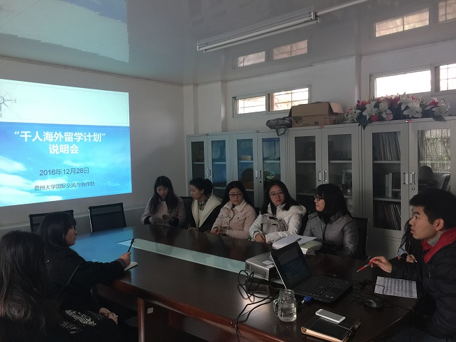 按照省教育厅及学校要求,校国际交流与合作处(港澳台办公室)2016年12月28日下午在国际交流与合作处召开贵州大学第二批“千人计划”行前宣讲会,会议由校国际交流与合作处(港澳台办公室)负责人主持,该批次所有学生参会。