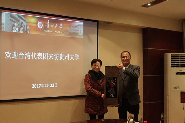 2017年2月23日上午,在贵州省委统战部联系下,台湾中华科技大学航空机械系(台湾中华航空维修训练中心主任)苏盛竹教授、海峡两岸振兴文教交流协会理事长付小琴女士、中原大学(台湾劳动部人才发展质量管理系统顾问)凌孝光教授、台湾中华科技大学航空服务管理系(台湾中华航空维修训练中心副主任)孙建宁教授一行4人来访我校,省委统战部王海副处长、孔祥龙副调研员陪同。贵州大学党委统战部王唯惟部长、港澳台办公室洪云主任、港澳台办公室谢明英副主任、机械工程学院何锋副院长、机械工程学院院长助理李家春教授、机械工程学院机械制造系贺富强主任、机械工程学院材料成型系肖华强副主任、港澳台办公室周斌科长、港澳台办公室对台项目员张思语参加会谈。