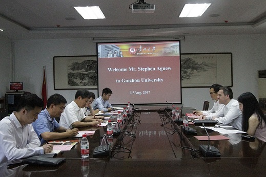 8月3日上午,英国驻重庆总领馆副总领事安仕得先生(Stephen Agnew)、英国驻重庆总领馆文化教育处主任陈兵先生(Chen Bing)、英国驻重庆总领馆贵州事务高级官员高燕女士(Mia Gao)一行访问我校。