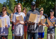 其次是汪太伟老师组织长老会学院学生进行的诗歌朗诵,学生们用中英文齐声朗诵了席慕蓉的《一棵开花的树》,将现场观众带入了诗意盎然的优美意境当中。