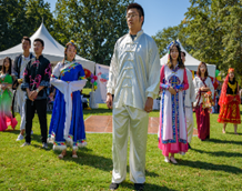然后是中国时装秀,中国留学生们身着中国传统民族服装进行T台走秀。他们优美的步伐,浓郁中国风情的服装表演吸引了现场无数好奇的目光。