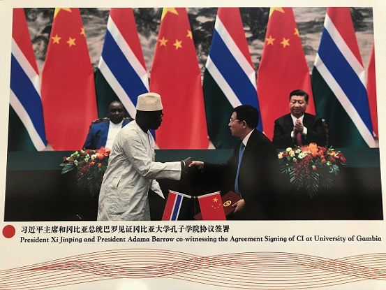 2017年12月,国家主席习近平和冈比亚总统巴罗见证冈比亚大学孔子学院协议签署。