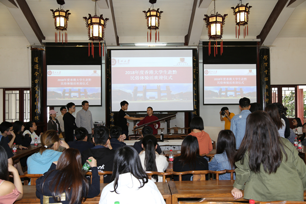 2018年5月23日上午,由共青团贵州大学委员会举办的“2018年度香港大学生赴黔民俗体验活动”欢迎仪式在贵州大学中国文化书院举行。校团委负责人对香港大学生来黔进行民俗体验活动表示热烈欢迎,介绍了贵州大学及贵州民族民间文化的相关情况。