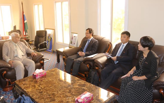 5月29日上午10点,我校代表团在冈比亚大学卡尼芬校区办公楼会议室参加座谈会,冈比亚大学校长安钧、我国驻冈比亚大使张吉明出席座谈会,冈比亚大学相关负责人和代表团全体成员参加座谈会。