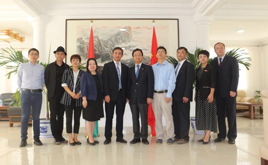 访问期间,我国驻冈比亚大使张吉明在大使馆接见我校代表团成员。并邀请代表团一行参加大使馆招待会。招待会上播放了贵州省宣传短片和我校宣传形象片《奔跑》,向冈比亚各界人士展示多彩贵州美丽贵大的风采。