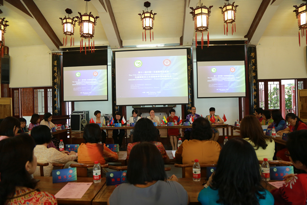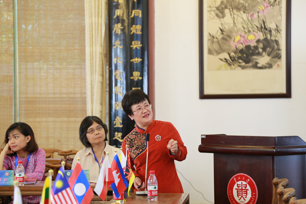 张成霞院长代表学校致辞。她说这是我们第二次举办“东盟国家本土汉语教师研修项目”,我们已经有了非常丰富的经验,希望能在去年的基础上更上一层楼。她指出通过中国-东盟教育交流周这个活动,我校与东盟十国的高校、教育部门和科研机构建立了广泛的合作关系,合作领域不断扩大,希望参加此次培训的教师回国后能积极地推介贵州大学,促进彼此的交流与合作。