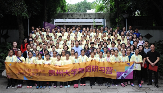 贵大新闻网讯7月2日上午,2018台湾青少年传统艺术传承计划贵州大学舞蹈研习营开营仪式在我校文化书院举行。我校副校长张覃、台北市艺术文化交流协会理事长庄美强、总干事陈玟陵,贵州省文化厅相关部门负责人出席。来自台湾的研习营师生121人参加仪式。