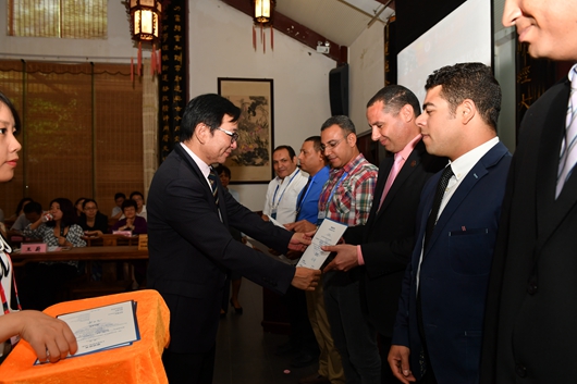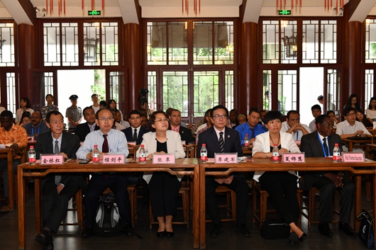 贵大新闻网讯7月9日上午,教育部2018年教育援外项目——“‘一带一路’背景下中非现代农业新技术推广培训班”结业仪式在我校文化书院勉学堂举行。校党委书记李建军、副校长张覃、贵州省农业科学院相关部门负责人出席,来自埃及、埃塞俄比亚、加纳、莫桑比克、尼日利亚以及坦桑尼亚国的21位学员,我校相关单位负责人参加仪式。
