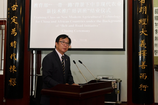李建军在致辞中表示,非洲国家作为“一带一路”国家和地区中最重要的组成部分,一直以来得到中国政府的高度重视,中非在各个领域、尤其在农业领域开展了密切的合作。我校承办此次“现代农业技术推广培训班”不仅顺应了双方农业合作的需求,也为贵州及非洲农业管理人员及科技工作者提供了良好的交流平台,授课教授与学员们就农业科技新技术及扶贫致富新经验进行了深度分享和交流,加深了中非在农业领域的合作。