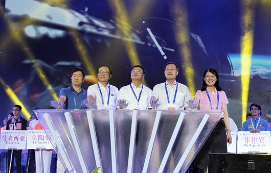 随后,来自中国以及全球28个国家和地区的60支代表队纷纷登场。张振威、张美圣、李建军等上台共同按动七彩彩虹开关,宣布比赛正式启动。开幕式后举行了精彩的文艺汇演。