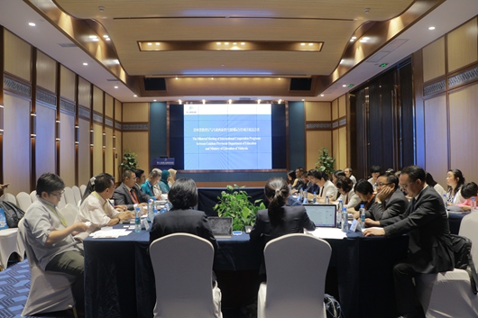 贵大新闻网讯7月27日晚,“贵州省教育厅与马来西亚教育合作项目”双边会谈在中国-东盟教育交流周永久会址二楼松柏山厅举行。马来西亚马六甲技术大学副校长萨希布丁、马来西亚驻南宁总领事黄奕瑞、马来西亚驻华大使馆参赞侯春兴、贵州省教育厅党组成员、教育工会主席王慧出席会议。马来西亚国防大学、普特拉大学、敦胡先翁大学、玛拉工艺大学、吉隆坡大学、马来亚大学等高校与贵州大学、贵州师范大学、贵州民族大学、贵州财经大学等省内高校相关负责人共22人参加会谈。会议由王慧主持。