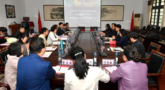 贵大新闻网讯10月11日,泰国兰实大学副校长Nares Pantaratorn 教授一行5人到我校交流访问,副校长张覃出席交流座谈会议。我校研究生院、科学技术研究院、国际交流与合作处、教务处、国际教育学院、土木工程学院、建筑与城市规划学院、资源与环境工程学院、医学院相关负责人参加交流。