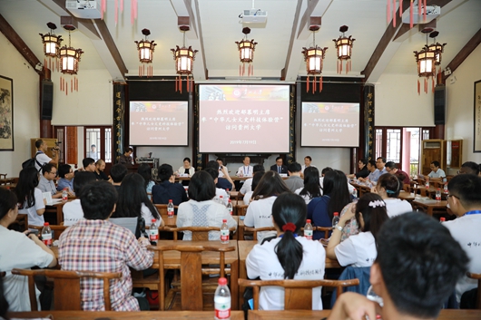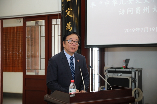 贵大新闻网讯7月19日上午,台湾中华儿女文史科技体验营开营仪式在我校中国文化书院勉学堂举行。台湾中华儿女文史科技体验营团长、新党主席郁慕明,副团长、台北市两岸人民交流服务协会理事长缪中建,贵州省人民政府台湾事务办公室主任周素平,省教育工会主席王慧,校党委书记李建军,副校长张覃出席仪式。省人民政府台湾事务办公室、省教育厅相关工作人员,学校相关单位、学院主要负责人以及两岸师生80余人参加仪式。开营仪式由张覃主持。