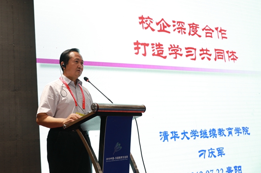 刁庆军发言。他对校企深度合作与发展的新模式、企业与高校的关系、校企合作基础、教学设计等方面进行了介绍。他指出,要通过校企合作建立战略伙伴关系,组织学习技术引领培训升级,产教融合、服务企业人才战略,深化合作、推动行业发展等方面来加深校企深度合作,打造学习共同体。