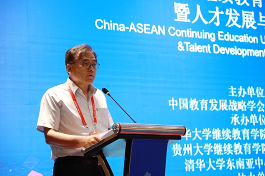 贵大新闻网讯7月22日下午,中国—东盟继续教育校企合作永久论坛暨人才发展与合作洽谈会在中国-东盟教育交流周永久会址二楼松柏山厅会议室六举行,本次论坛由中国教育发展战略学会主办,清华大学继续教育学院、贵州大学继续教育学院等共同承办,《中国远程教育》杂志社协办。校党委副书记令狐彩桃、中国教育发展战略学会常务副会长兼秘书长韩民、亚洲地区中国和平统一促进联合总会常务副秘书长周昭耿、清华大学继续教育学院党委书记刁庆军出席,来自马来西亚、印尼、新加坡、俄罗斯等国家的10余所院校近50位嘉宾参会。