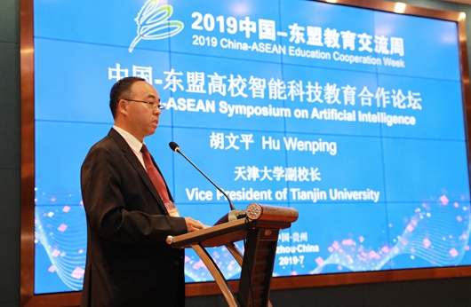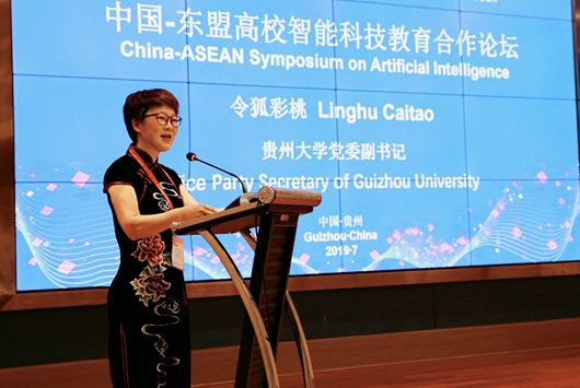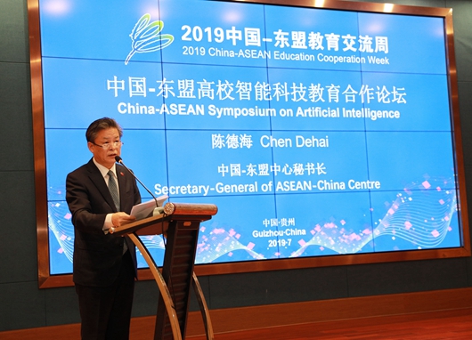 贵大新闻网讯7月23日上午,中国-东盟高校智能科技教育合作论坛在中国-东盟教育交流周永久会址二楼百花厅会议室举行,本次论坛由天津大学主办,我校大数据与信息工程学院承办。中国-东盟中心秘书长陈德海、柬埔寨教育青年体育部国务秘书图维萨索、缅甸克耶邦发展和社会事务副部长昂觉泰、贵州省教育厅副厅长级督学何秀黔、中国教育部中外人文交流中心副主任夏娟、我校党委副书记令狐彩桃、泰国驻中国大使馆马培文参赞、印尼驻中国大使馆Yaya Sutarya参赞、越南驻华大使馆二秘黄梅演及部分东盟高校嘉宾、产业界代表、国内相关单位参会。天津大学副校长胡文平担任主持。