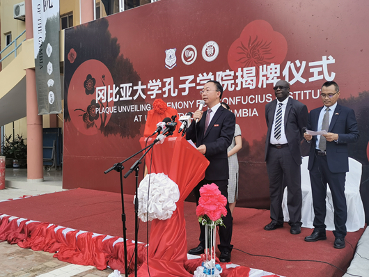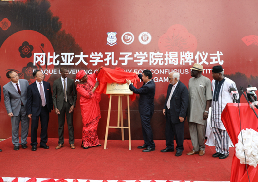 中国驻冈比亚使馆、中国援冈医疗队、在冈中资企业代表、贵州大学代表团以及冈比亚大学、孔子学院师生参加了揭牌仪式。