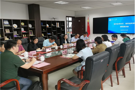 6月18日上午,省农业农村厅对外交流合作处处长付卫宁、省农业科学院外事处副处长巩华静等一行来校调研,座谈会在国际交流与合作处会议室举行。会议由国际处处长洪云主持,精细化工研究开发中心副主任陈卓、农学院副院长程剑平及相关学院教授参加了会议。