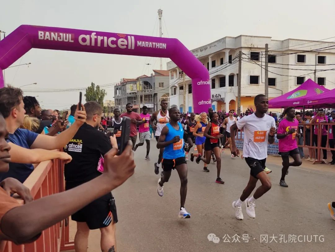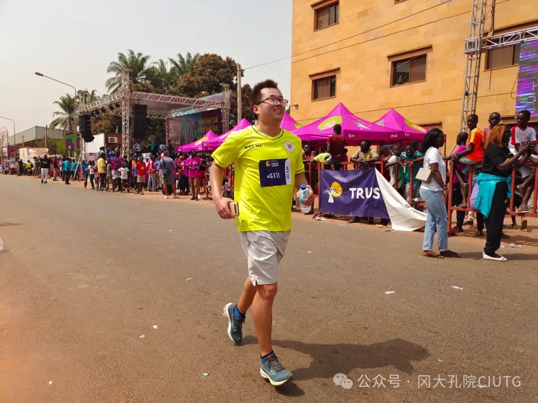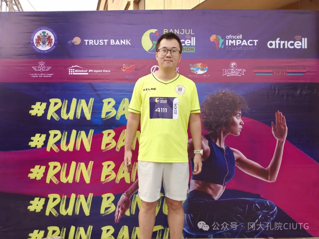 冈比亚大学孔子学院的青年教师李博,报名参加了21公里的半程马拉松比赛。
