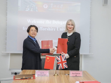 Sue Reece,ViceChancellor of Staffordshire University, visited GZU on March 8, when two pieces of MOU were successfully signed.