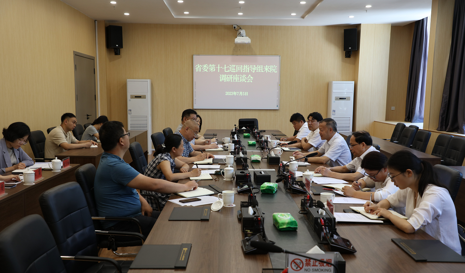 7月5日上午,省委第十七巡回指导组组长张美圣、副组长李如晴等一行6人莅临我院就学习贯彻习近平新时代中国特色社会主义思想主题教育开展情况进行调研指导。学院党委书记邸姜滔、副书记雷凌和学院主题教育办公室全体成员参加座谈会。