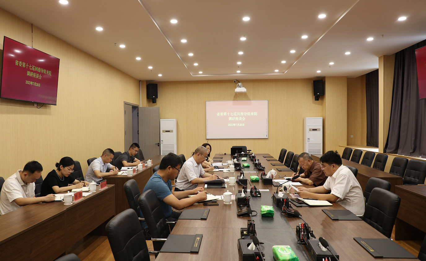 7月26日上午,省委第十七巡回指导组组长张美圣一行莅临我院调研指导主题教育工作开展情况。学院党委书记邸姜滔和学院主题教育办公室全体成员参加座谈会。