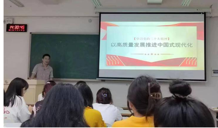 二、不断加强支部党建工作和党员队伍建设。一是强化党支部组织建设。扎实做好支部标准化建设,充分发挥基层党组织的战斗堡垒和党员的先锋模范作用。建立健全党支部组织建设,优化组织力,调整党支部支委会,使党支部成为教书育人的坚强战斗堡垒。学院党委委员、组织部部长罗倩同志到我系开展基层组织建设调研工作,主要围绕了解基层党组织设置、领导班子建设、创先争优活动开展、制度建设、保障机制建设等方面为优化支部建设提出了重要意见和建议。二是发挥党员先锋模范带头作用。始终加强党员队伍教育管理,教育引导广大师生党员加强党性锻炼,做到在党爱党、在党言党、在党为党,把更广大的教职员工和学生广泛团结凝聚起来,发挥好先锋模范带头作用。为深入学习贯彻习近平新时代中国特色社会主义思想,深入学习宣传贯彻好党的二十大精神,推动党的创新理论成果深入人心。10月12日,由贵州人民武装学院思政课教师高欣副教授、马娟娟副教授分别与思想政治专业1名在校学生组成的“理论宣传二人讲”团队,赴罗甸县龙坪镇八总村开展以“从长征到新长征”为主题的宣讲活动,此次宣讲不仅推动党的创新理论成果深入人心“飞入寻常百姓家”,也为我系思政专业学生树立了争做“时代新青年”的良好示范。