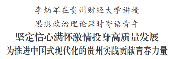 12月26日,省委副书记、省长李炳军到贵州财经大学为高校师生讲授思想政治理论课,寄语广大青年深学笃用习近平新时代中国特色社会主义思想,认真贯彻习近平总书记对贵州工作重要讲话指示精神,坚定信心满怀激情投身高质量发展,为推进中国式现代化的贵州实践贡献青春力量。副省长张敬平参加。
