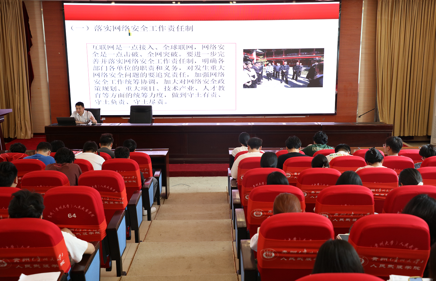 为全面增强学院广大师生的网络安全意识,提高网络安全防护技能和网络文化素养,切实营造安全健康的校园网络环境。6月13日上午,我院在崇文楼多功能厅举办网络安全专题讲座。本次讲座由贵州大学人民武装学院“理论宣传二人讲”团队高欣博士和杨全洪副教授主讲,学院100余名在校生现场玲听。
